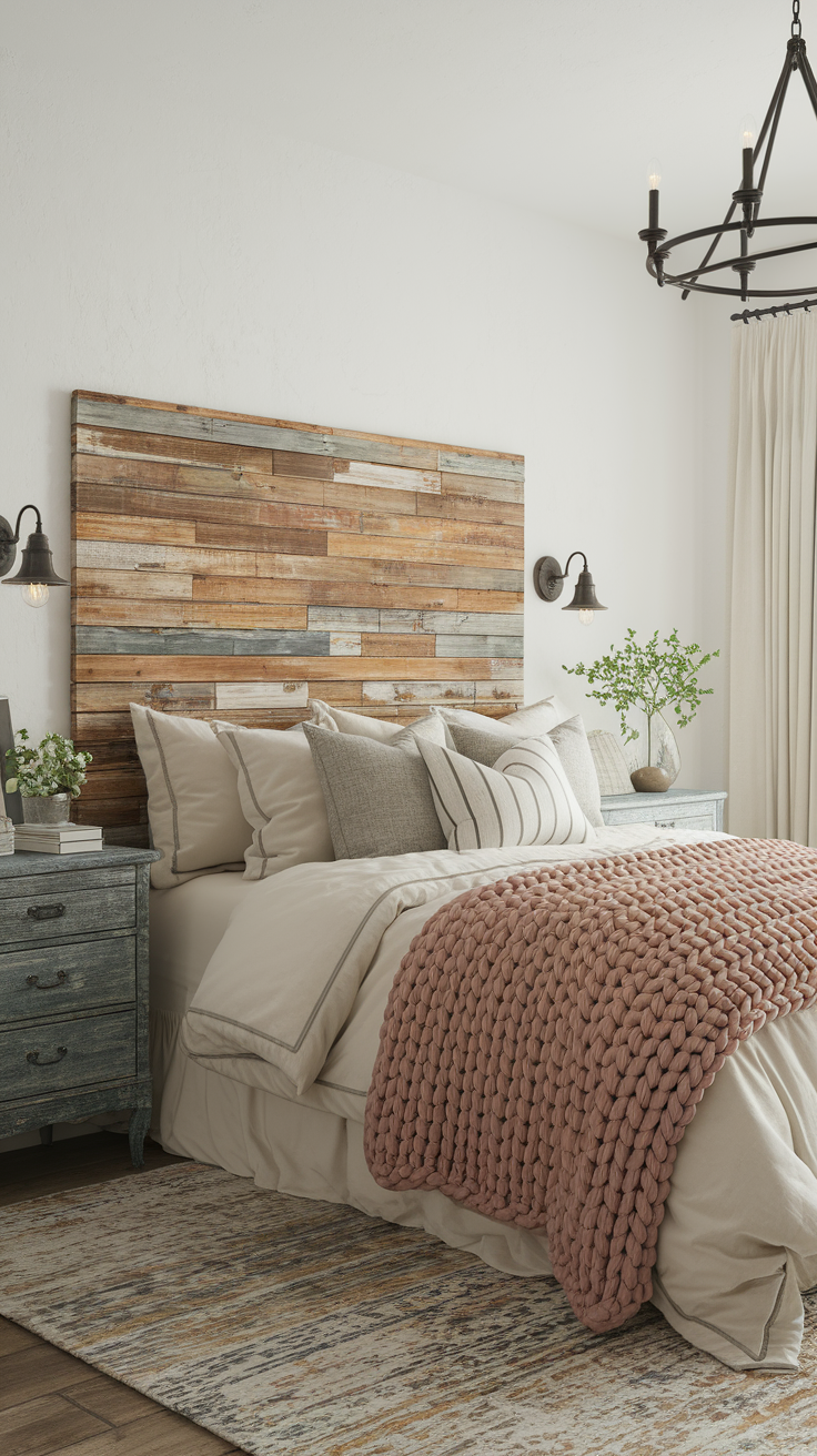 Wooden headboard – Either reclaimed wood or something simple and sturdy—skip the ornate stuff.
