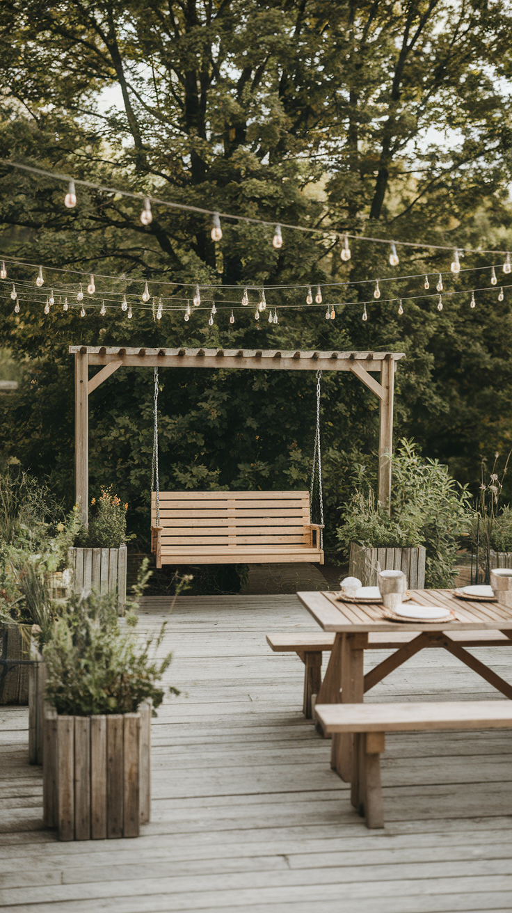 Wood rocking chairs or bench swing – Classic, timeless, and perfect for iced tea sipping.
