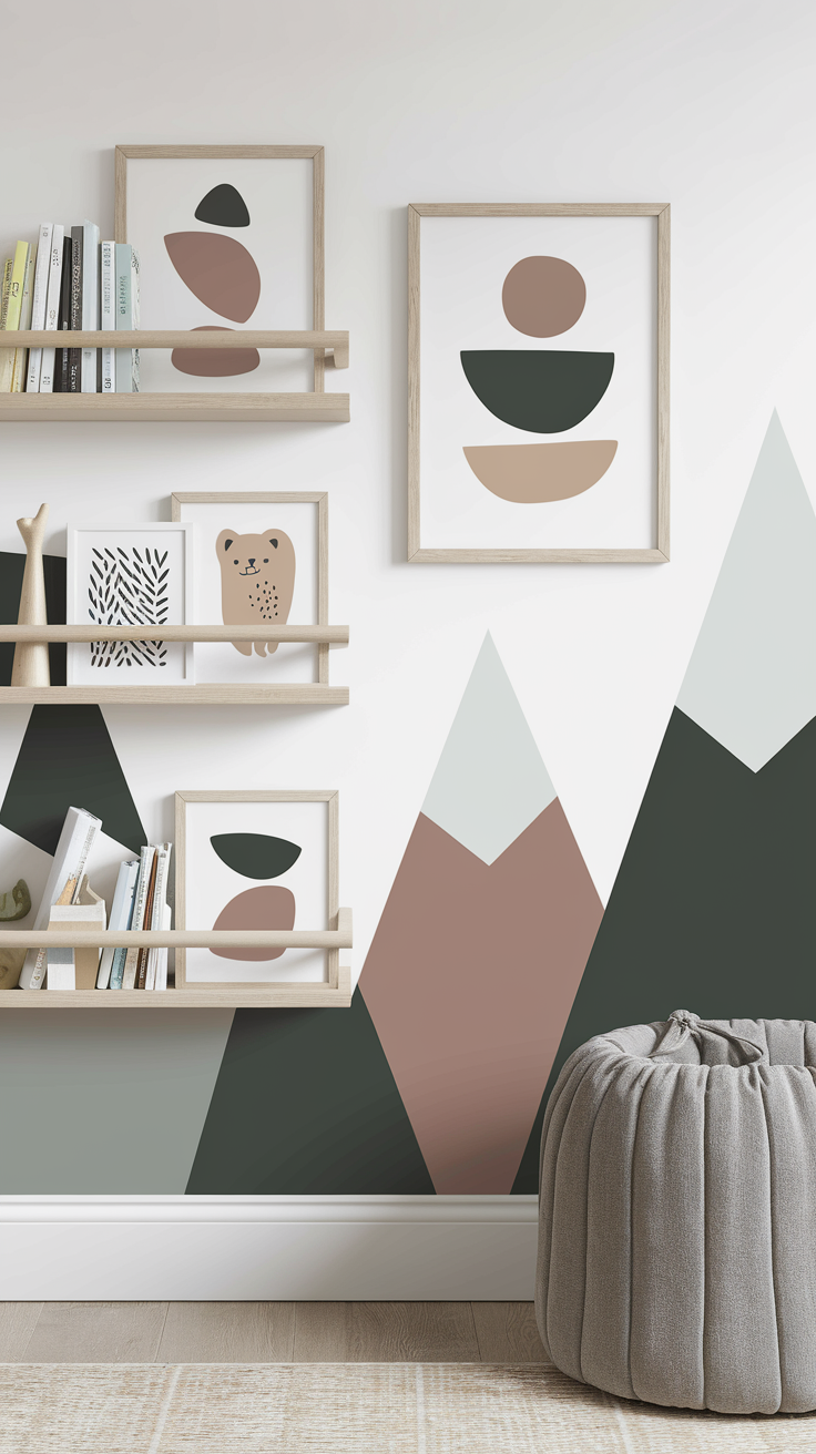 Wall decals or murals: Think mountains, forests, or abstract shapes. A wall mural can serve as a striking focal point and accent wall, adding depth and visual interest. Easy to peel off when you’re ready for a change.