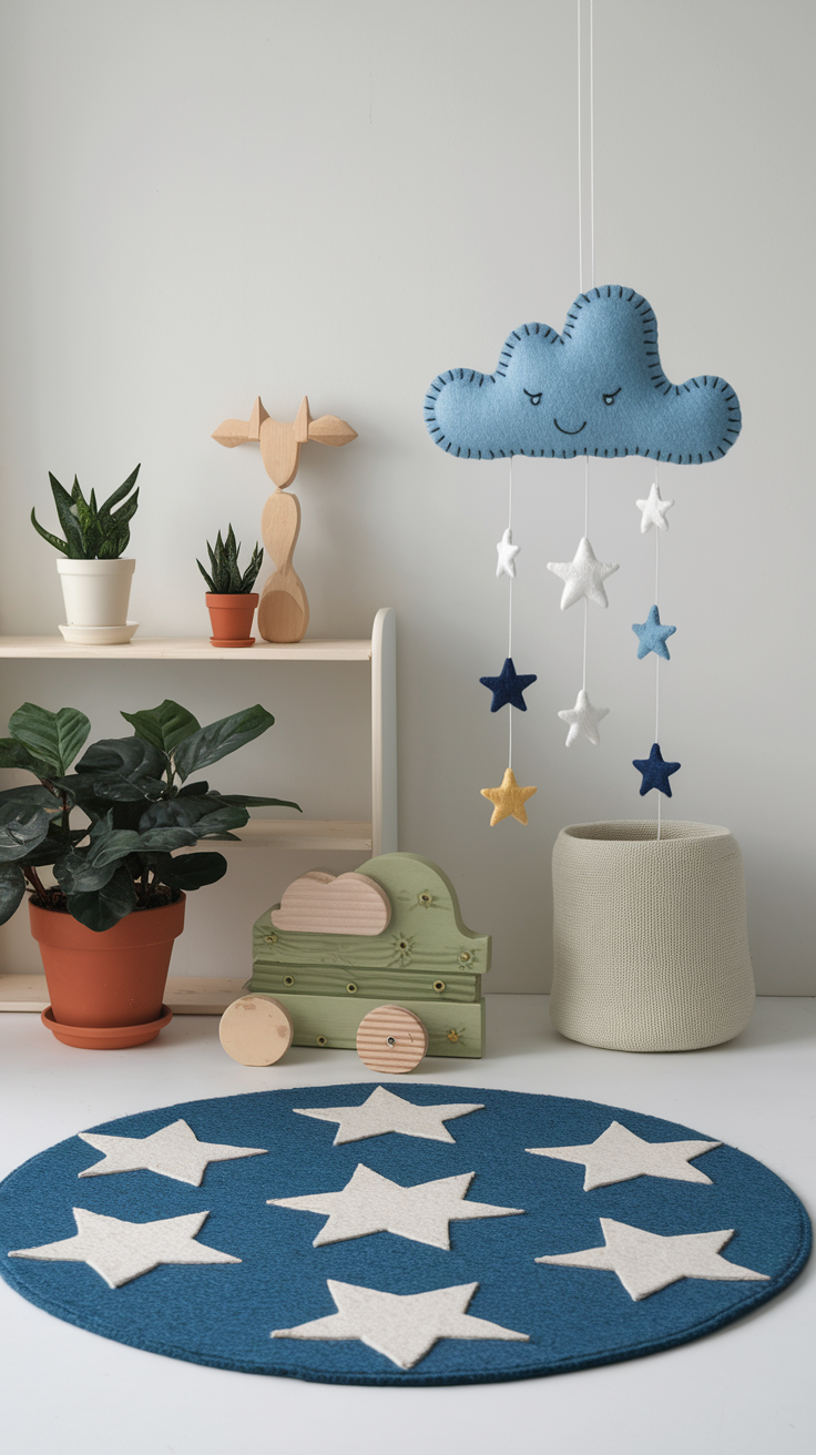 Statement mobiles: Go for felt clouds, wooden shapes, or minimalist designs instead of the plastic rainbow explosion. If you find unique accessories, remember to give credit to the creators or designers.