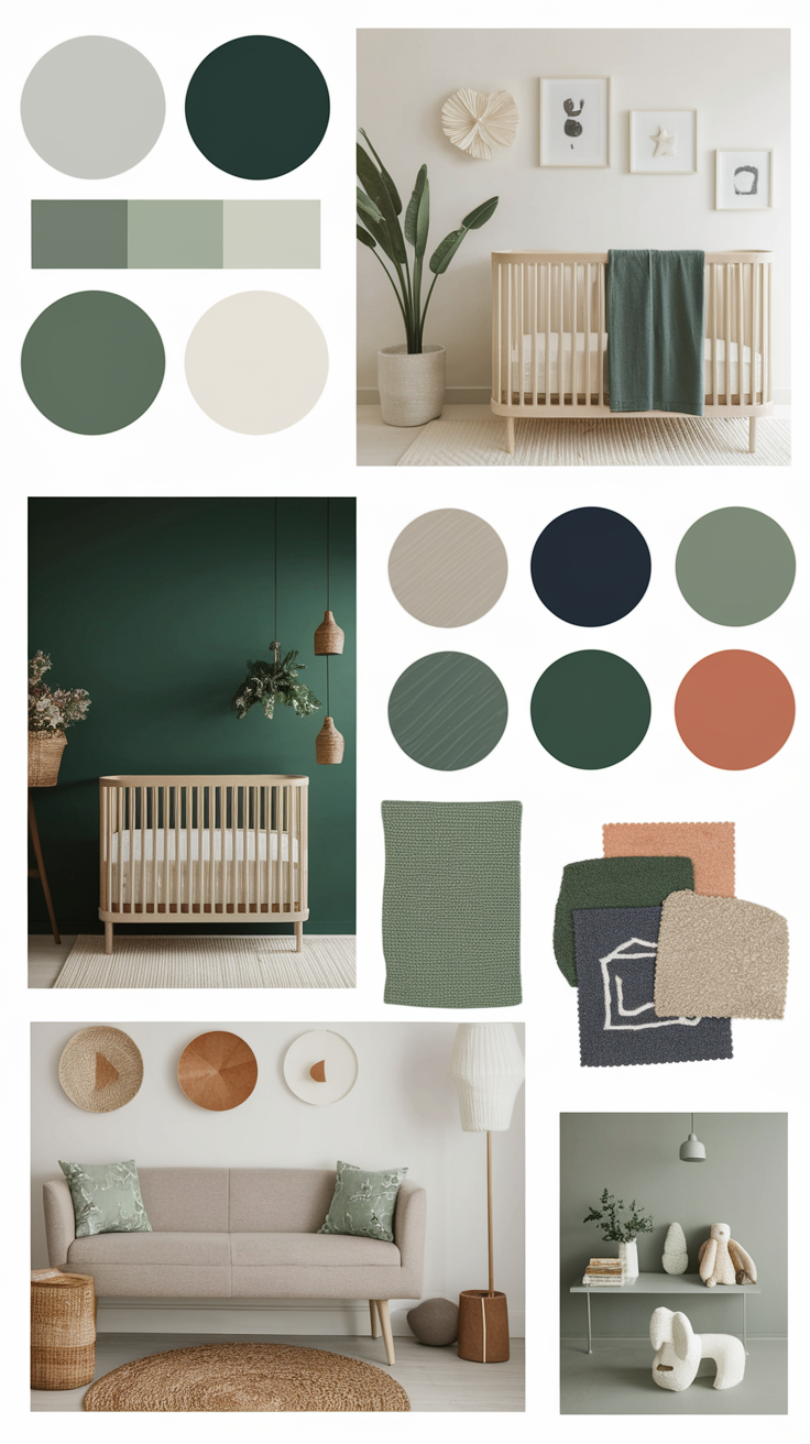 Yes, you can use darker tones in a nursery. Deep greens, charcoal, or navy paired with natural wood accents look stunning, create a modern look, and give a cozy cocoon vibe. Ever walked into a room and instantly felt calmer? That’s what these palettes do.