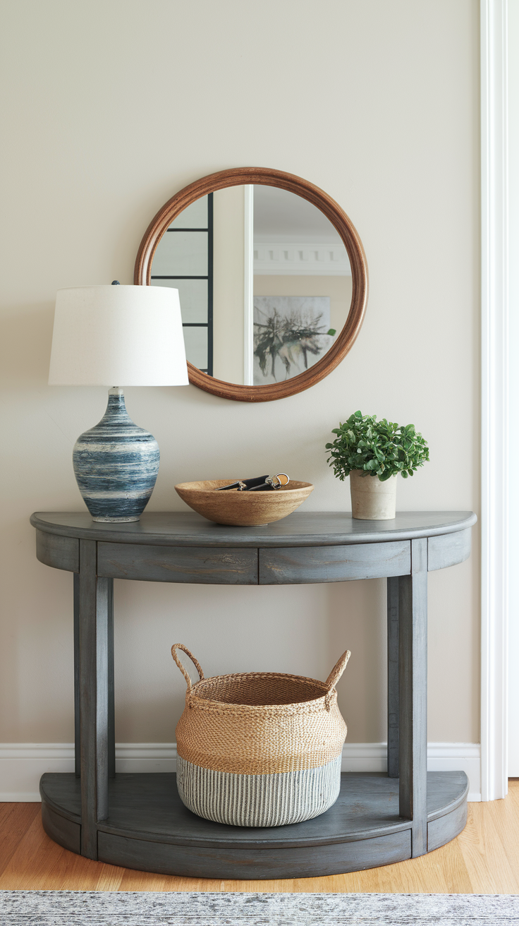 Round table as a central piece can add both style and functionality to a small entryway, serving as a focal point for decor and essentials.
