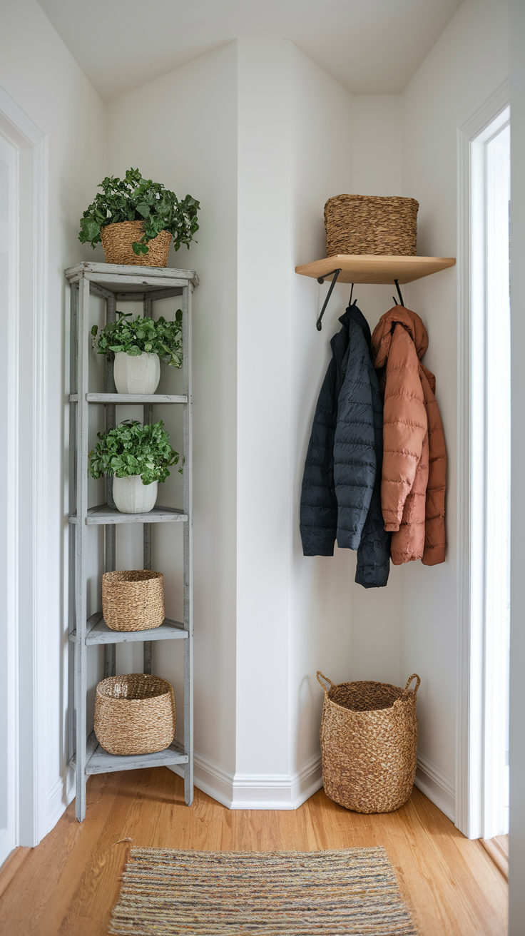 Corners are often ignored, but they’re storage gold and can help maximize storage in a small entryway.