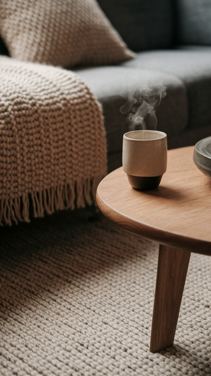 I swapped a cold metal coffee table for a wooden one last winter—instantly made my living room feel like a cozy mountain cabin.