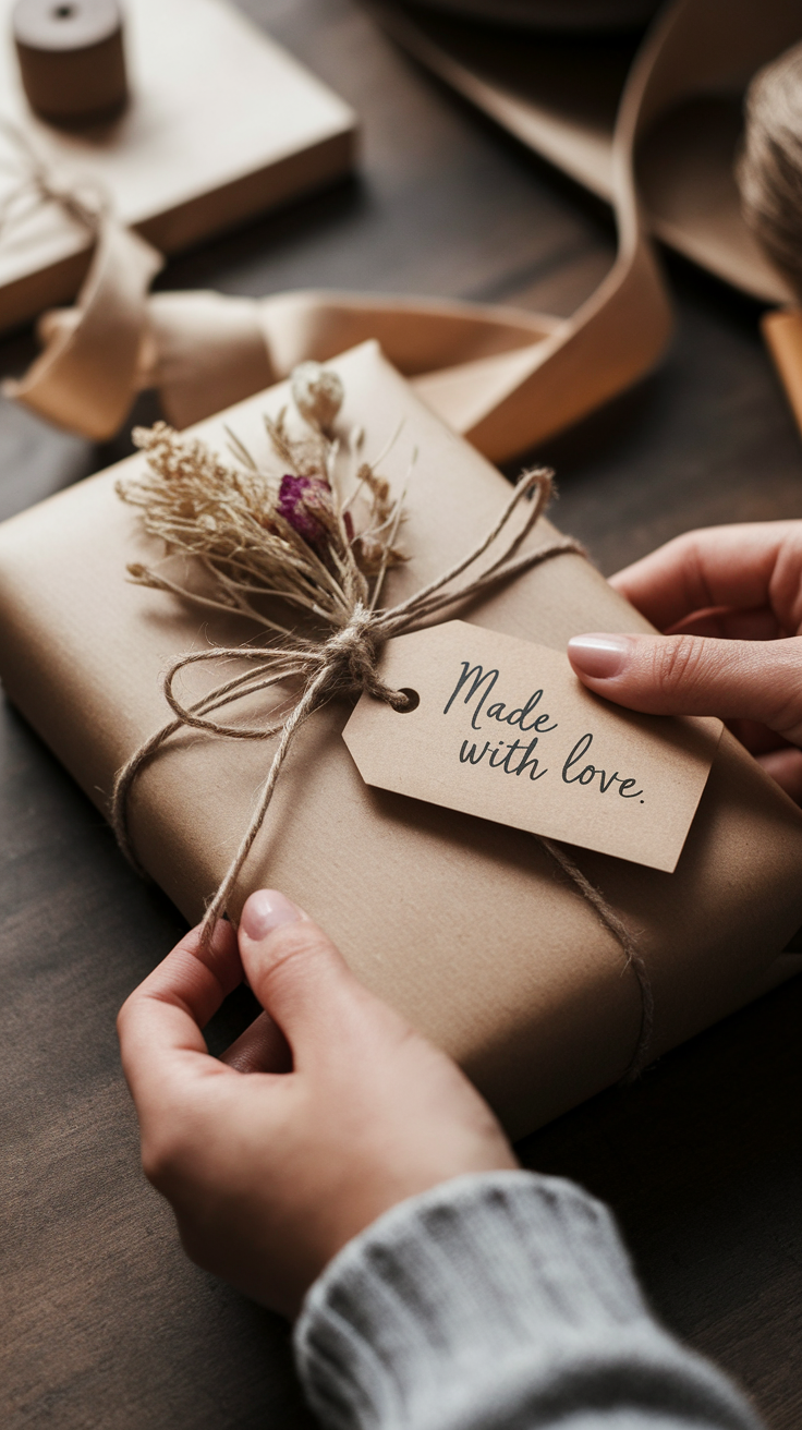 Presentation makes a huge difference. Wrap your handmade gift in brown paper, fabric, or an old map for a rustic touch. Add a sprig of dried lavender or a cute note. You can even hide the gift and leave clues — because who doesn’t love a mini treasure hunt?