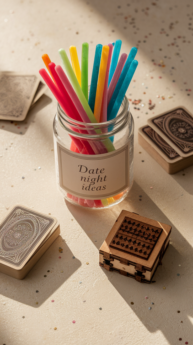 Date Night Jar – Write creative date ideas on popsicle sticks and let him pick one when you’re stuck on what to do. You can even recreate a favorite board game or activity as a personalized gift.