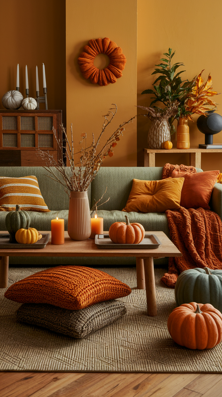 When sweater weather hits, your home should feel like a warm hug. Incorporate pumpkins and miniature pumpkins as part of your autumn collection of decor items to evoke cozy, seasonal vibes. A cohesive autumn theme can be achieved with carefully selected seasonal decor, bringing that coziness we all crave—without turning your living room into a Halloween store.