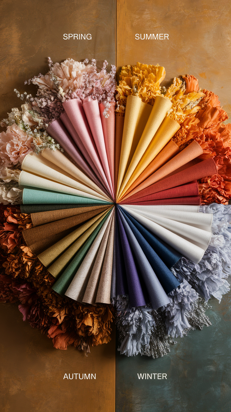 Start by paying attention to the colors you naturally gravitate toward. Do you love soft pastels and fresh greens (spring), or are you more into earthy tones and rich golds (autumn)? You can also look at your wardrobe—the colors you wear often usually match the tones you feel most comfortable around. If you want to be extra thorough, search for a seasonal color analysis quiz online—it’s fun, quick, and surprisingly accurate.