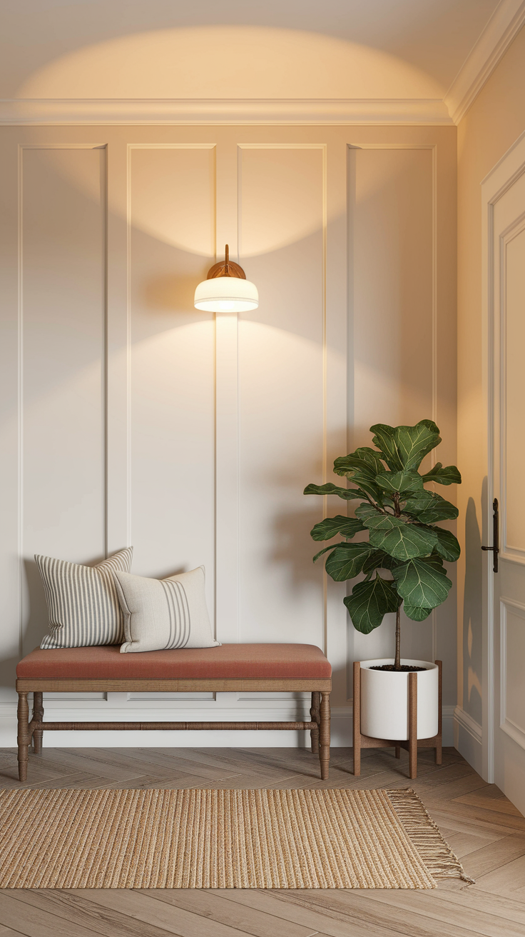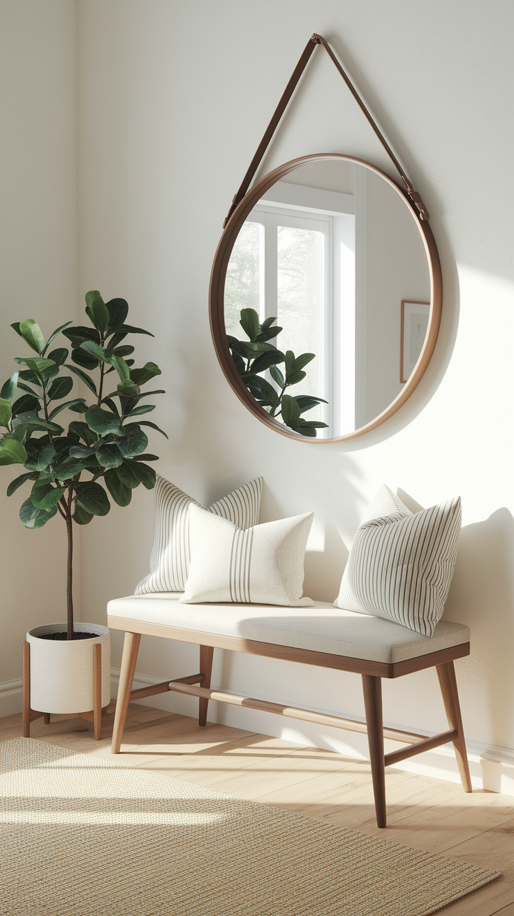 Mirror: Not just pretty but functional—you can check yourself before heading out. Hang a large mirror above the bench for maximum impact.