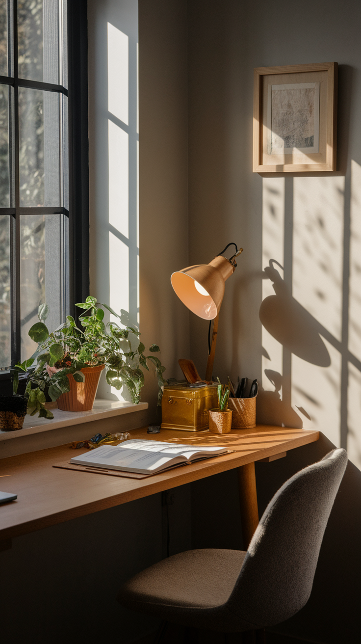 Warm lighting makes you feel cozy, while cool lighting keeps you alert. Mix them strategically. You want “productive glow,” not “interrogation room vibes.”