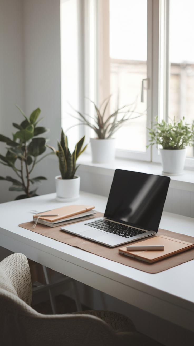 Clutter kills focus. I know, I know — you need that third pen and the half-dead succulent. But trust me, your brain works better in a tidy space.