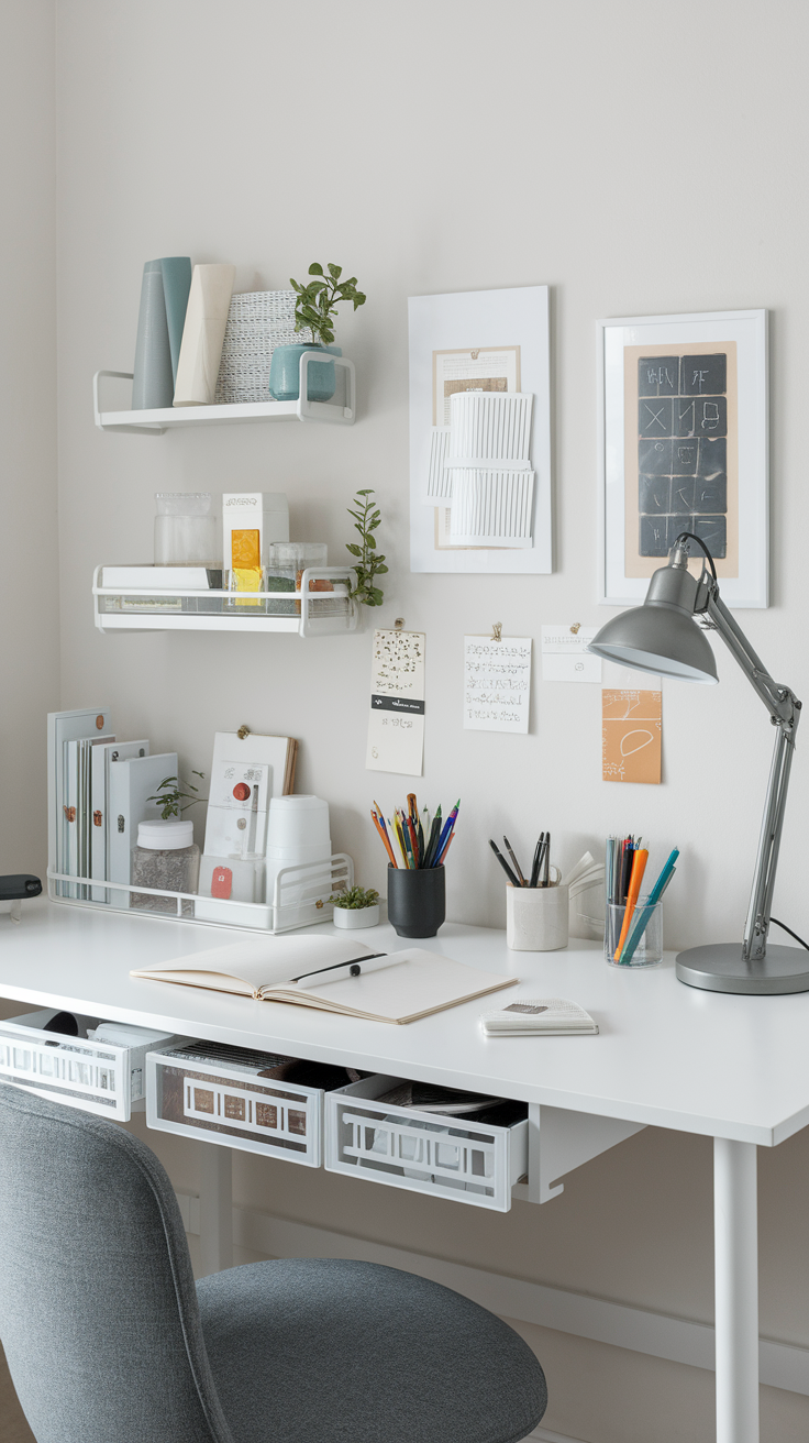 Floating Shelves: Store books or décor without taking up desk space.