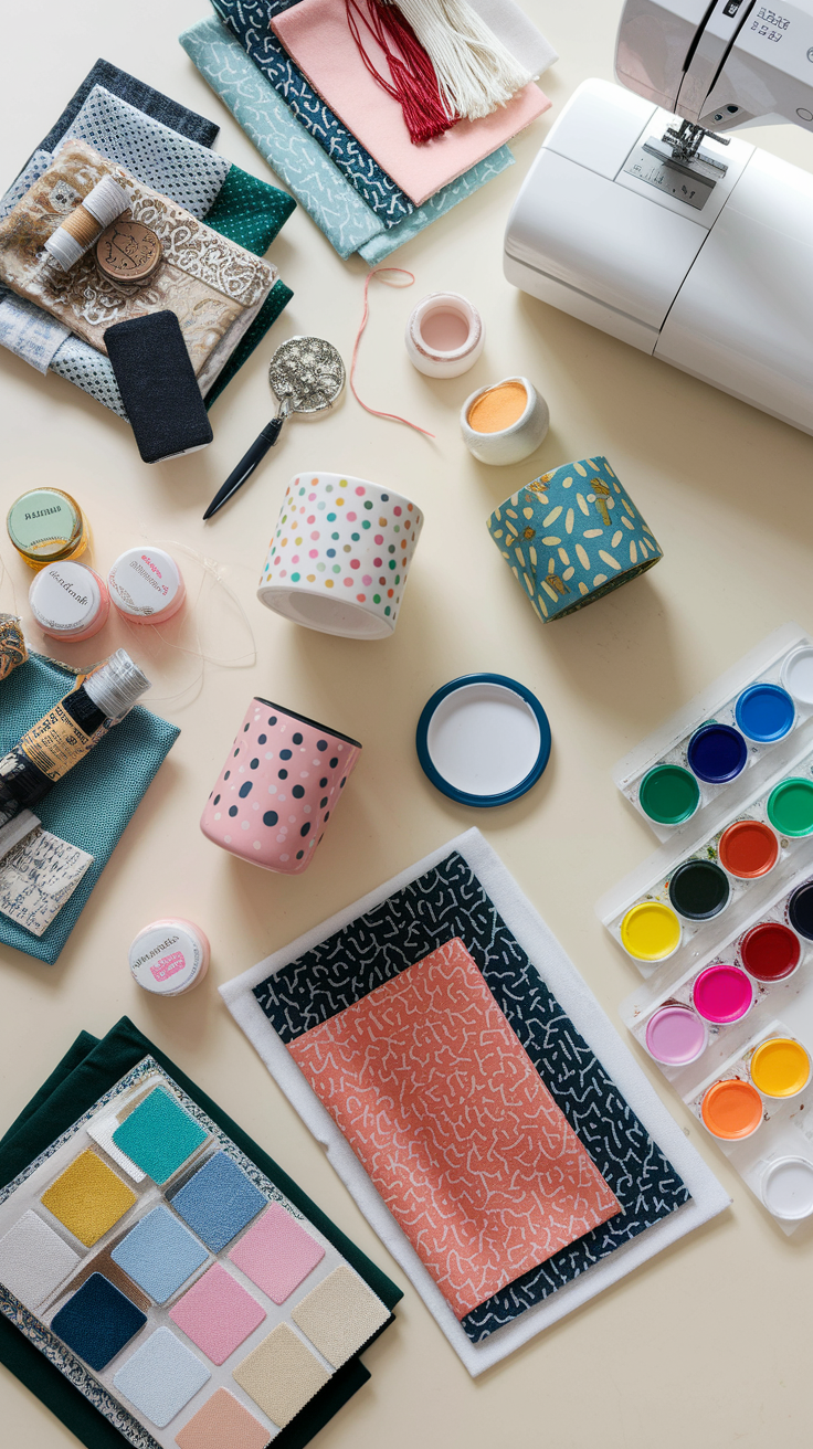 You don’t need a craft room that looks like Martha Stewart’s garage. But you do need a few things: essential crafting materials like acrylic paints for decorating mugs or canvases, embroidery floss for personalized embroidery projects, fabric glue for attaching embellishments, a sewing machine for sewing or fabric projects, various types of fabric for handmade accessories or gifts, and fabric paint for customizing t-shirts or tote bags.