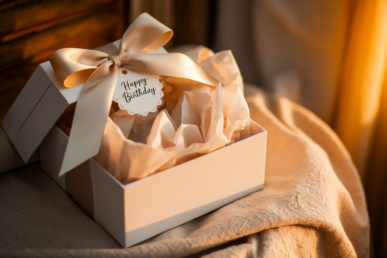 A beautifully packaged gift, such as one presented in a white gift box, enhances the recipient's experience and makes the moment even more special.