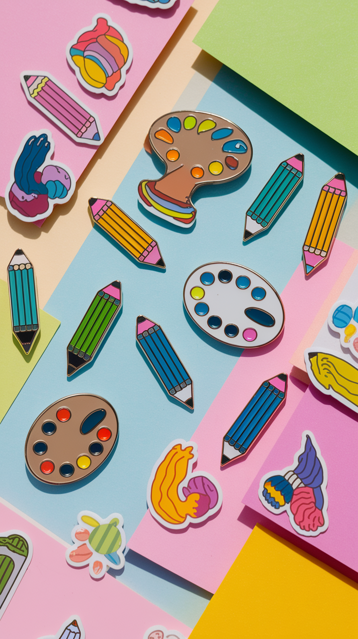 Artists love decorating… everything. Sketchbooks, bags, jackets, laptops—you name it. Art-themed enamel pins or vinyl stickers are small but personal.