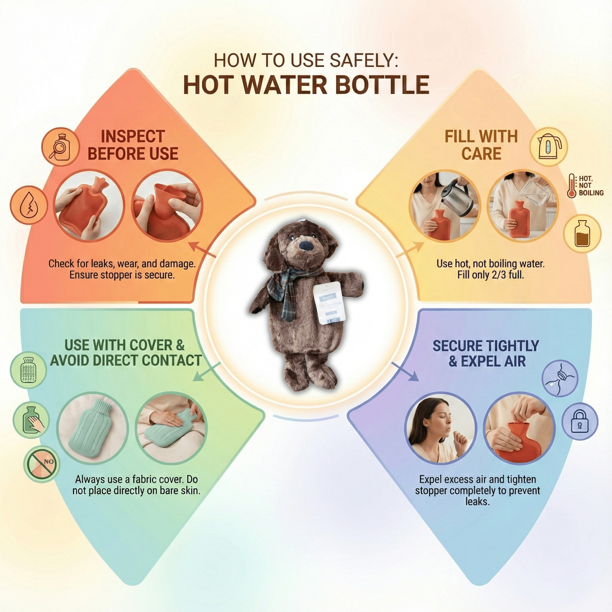 Combining warmth, softness, and a playful animal design, this plush Hot Water Bottle – Plush Dog is a must-have winter essential and a fun yet practical gift idea for all ages.